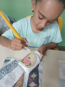 O Centro Social Nossa Senhora do Rosário foi palco de uma atividade especial que uniu aprendizado, diversão e sustentabilidade. Sob a orientação da educadora Fernanda, as crianças participaram de uma oficina de decoupage em vidro, técnica artística que transforma objetos reutilizáveis em peças decorativas e cheias de significado.