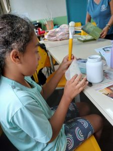 “Essas atividades são importantes porque permitem que as crianças se expressem, trabalhem em grupo e entendam que é possível criar algo bonito a partir do que seria descartado”, explica Fernanda, responsável pela oficina.